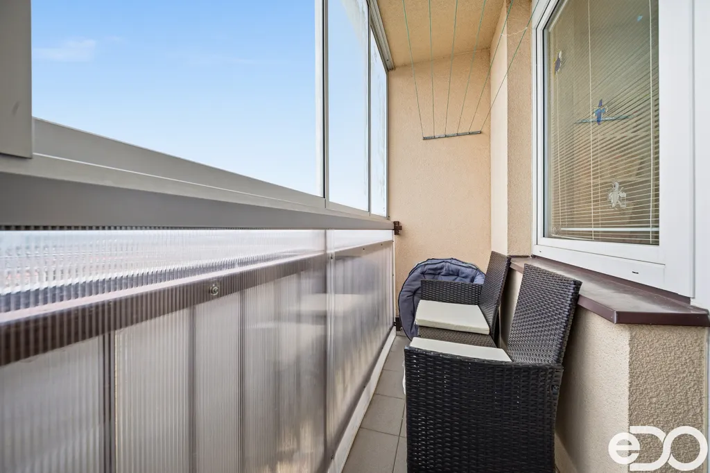 • Byt disponuje čtyřmi lodžiemi, z nichž tři jsou zasklené a dvě opatřené bezpečnostním sklem, což zvyšuje komfort i bezpečnost.