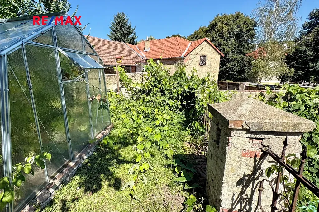 Zahrada o rozloze 2374 m2 je situována ve třech úrovních. Dole u domu je možnost parkovacího stání a za domem posezení. Nad domem je pak zahrada vhodná k posezení s ovocnými keři a ovocným sadem. Na pozemku je skleník, zahradní stavba s včelínem a solární panely.