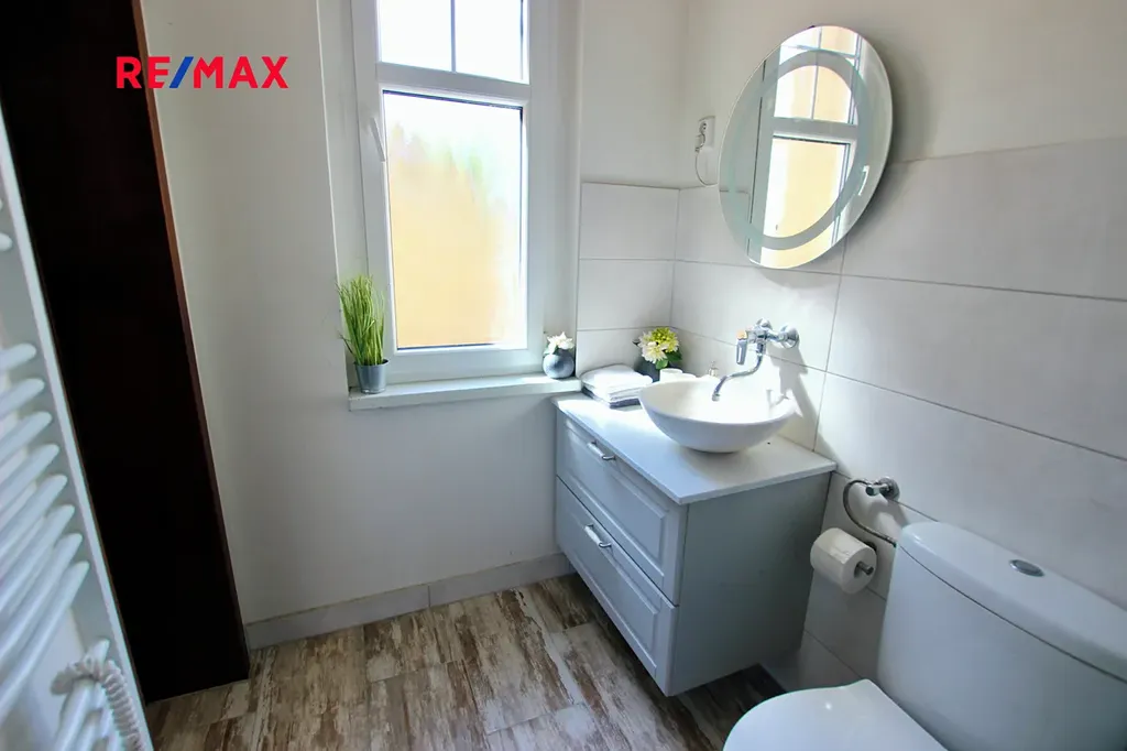 V přízemí domu je byt před rekonstrukcí o dvou pokojích, kuchyň, toaleta, koupelna, spíž a garáž. Dům je částečně podsklepen a je tu k dispozici technické zázemí domu.