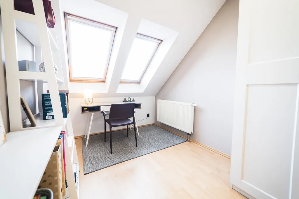 Ložnice (14,40 m²) je samostatná a klidná. Druhý pokoj (12,10 m²) je plnohodnotný – vhodný jako dětský pokoj, pracovna nebo pokoj pro hosty.