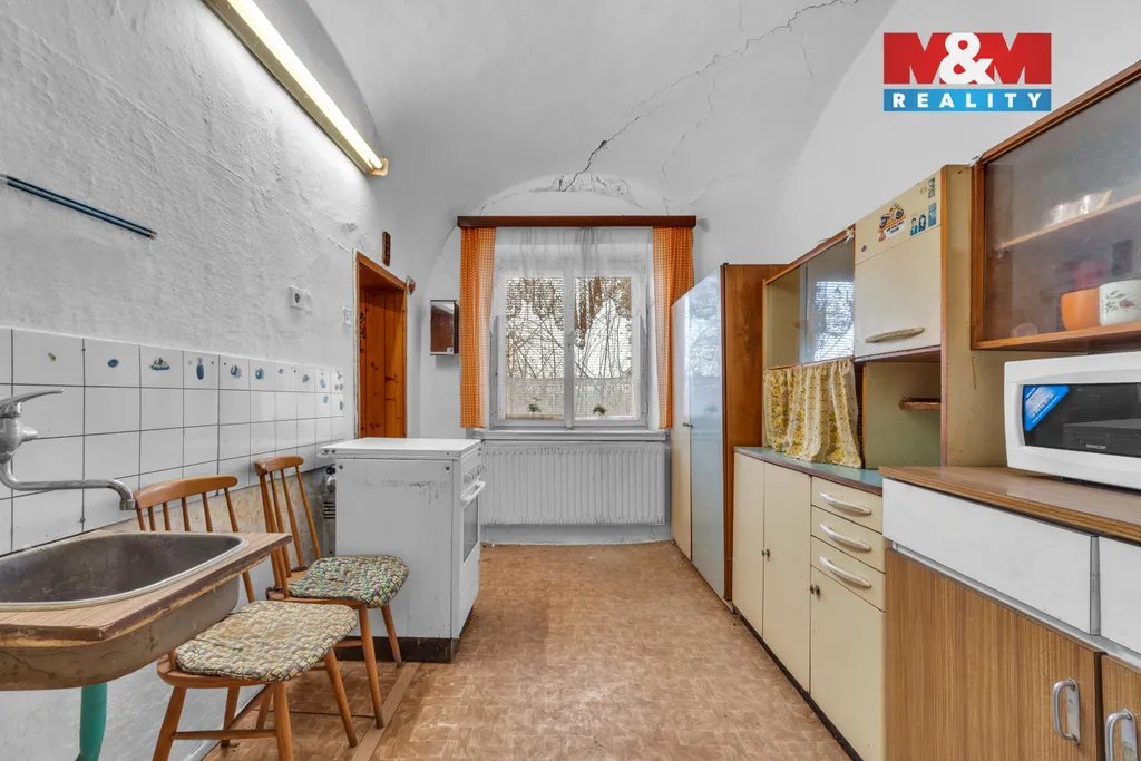 Jednopodlažní dům se zastavěnou plochou 230 m2 stojí na mimořádně prostorném pozemku o celkové výměře 3 621 m². Objekt je smíšené konstrukce, je částečně podsklepený a nachází se ve stavu před rekonstrukcí, což nabízí výbornou příležitost k modernizaci, rozšíření či přizpůsobení vlastním představám – ať už pro trvalé bydlení, rekreaci nebo jako investici. Zajímavou variantou je rovněž vybudování obytného podkroví na prostorné půdě.