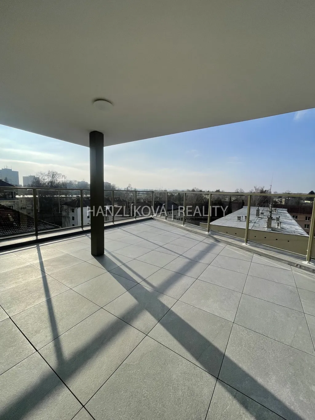 Exkluzivně nabízíme k pronájmu zcela novou bytovou jednotku 3+kk, byt číslo B.33, která se nachází v posledním patře ( 6. NP / 6NP) nově postaveného bytového domu "residence Hálkova". Byt o výměře 85 m2 + terasa 48 m2 je dispozičně řešen jako 3kk,je světlý prostorný byt a skládá se z těchto místností : předsíň s vestavnými skříněmi, pokoj, pokoj, koupelna se sprchovým koutem a vanou u, obývací pokoj s kuchyňským koutem a krásná terasa o výměře 48 m2, ze které je výhled včetně značkových elektrospotřebičů, osvětlení ve všech místnostech, klimatizační jednotky, předsíňová stěna, předokenní venkovní žaluzie.