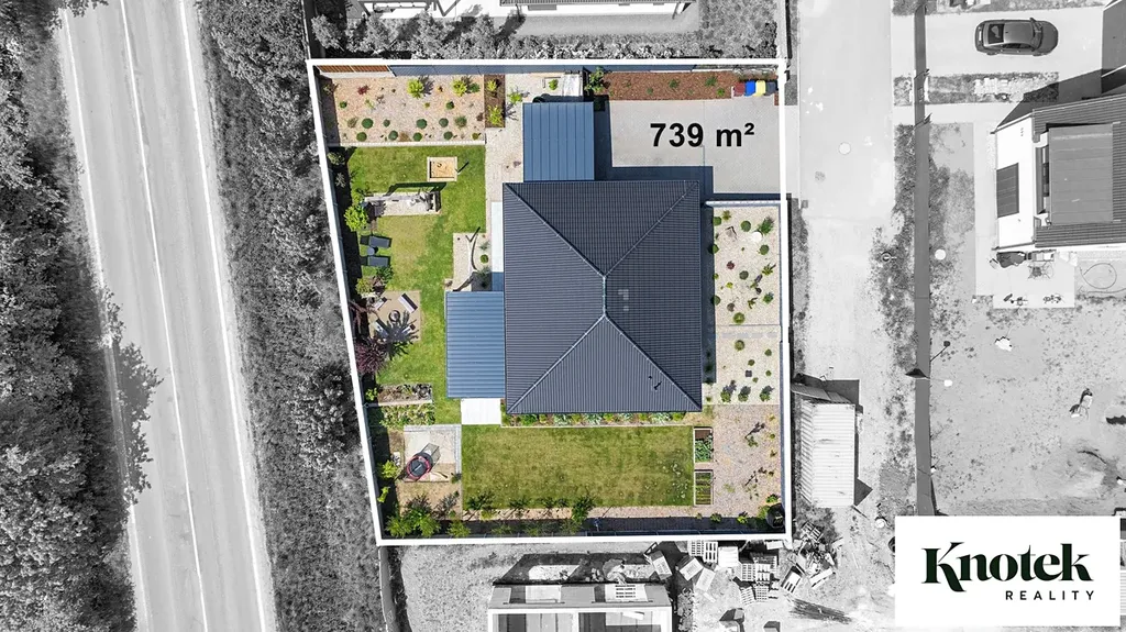 Dům byl postaven v roce 2022 a stojí na 739 m2 velkém pozemku.