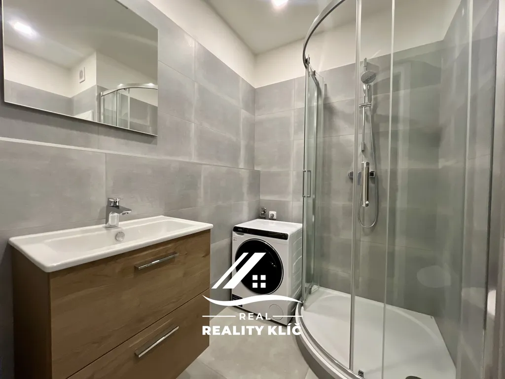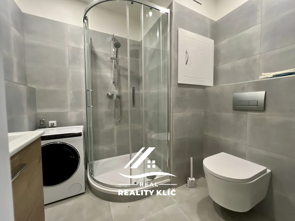 Dominantou bytu je útulný a světlý pokoj, který díky své orientaci nabízí dostatek denního světla. Kuchyň je vybavena moderní kuchyňskou linkou včetně indukční varné desky, elektrické trouby, digestoře, myčky nádobí a mikrovlnné trouby. Koupelna je společná s WC a je vybavena sprchovým koutem, umyvadlem se skříňkou, zrcadlem a novou pračkou.