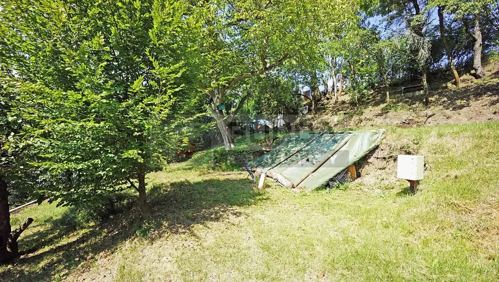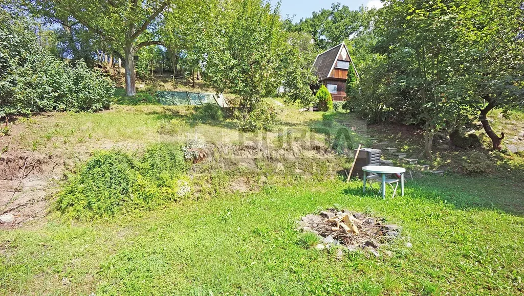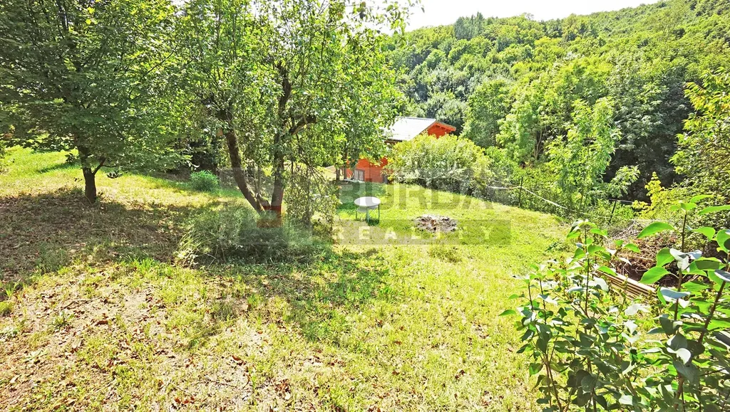 Svažitý pozemek je orientovaný na osluněnou stranu, nejlepší místo pro umístění chaty je na horní terase, s umístěním kanalizační jímky na spodní terase. Umístění chaty na horní terase umožňuje jeřábem osadit montovanou chatu na patky nebo kontejnerový dům, s příjezdem jeřábem ze shora.