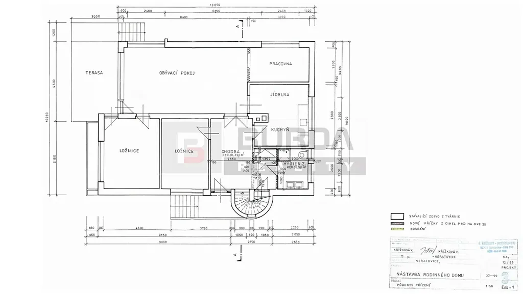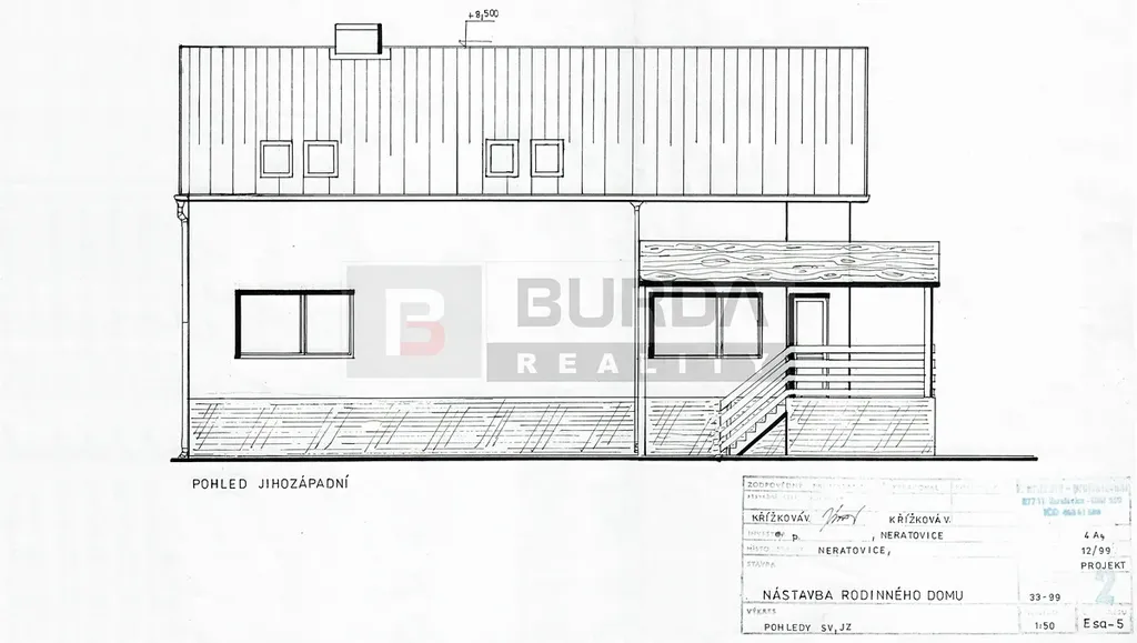 Dům je k celkové rekonstrukci a nabízí možnost přestavby na moderní futuristickou vilu, ale i na klasický dům se sedlovou střechou, s případnou nástavbou dalšího podlaží, s použitím současných materiálů.