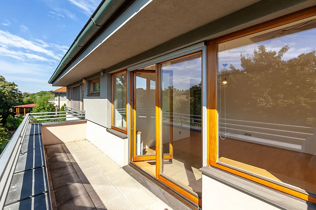 Pokud hledáte ideální prostředí pro spokojené rodinné bydlení nedaleko Prahy a zároveň být kousek od přírody, dovoluji si Vám nabídnout rodinný dům v obci Úholičky ul. Nade Dvorem. Jedná se o klidnou rezidenční oblast zaručující dostatečné soukromí. Dům stojí na konci slepé ulice. Dům se skládá ze tří podlaží o celkové užitné ploše 342m2 ( včetně 102,3m2 užitné plochy podzemního podlaží a 47,5m2 teras). V 1.PP se nachází garáž pro dvě auta, technické zázemí s prádelnou a velký úložný sklepní prostor. Dominantou 1.NP a celého domu je prostorný obývací pokoj propojený s jídelním a kuchyňským koutem. Toto prostředí zpříjemňuje dostatek světla díky jižní orientaci oken s výhledem do zeleně a vstupem na terasu (38m2). Terasa zaručuje dostatek prostoru na posezení, grilování a odpočinek. Díky skvělé orientaci se stane srdcem Vašeho domova. V patře se dále nachází vstupní hala, šatna, spíž u kuchyně, samostatný pokoj, koupelna se sprchovým koutem a WC. V patře pak nalezneme čtyři identické samostatné pokoje a společnou velkou koupelnu s WC. Ložnice rodičů má vlastní koupelnu se sprchovým koutem a WC. Kromě jednoho pokoje je součástí místností i vlastní šatna a jeden pokoj má vlastní terasu (9,5m2).