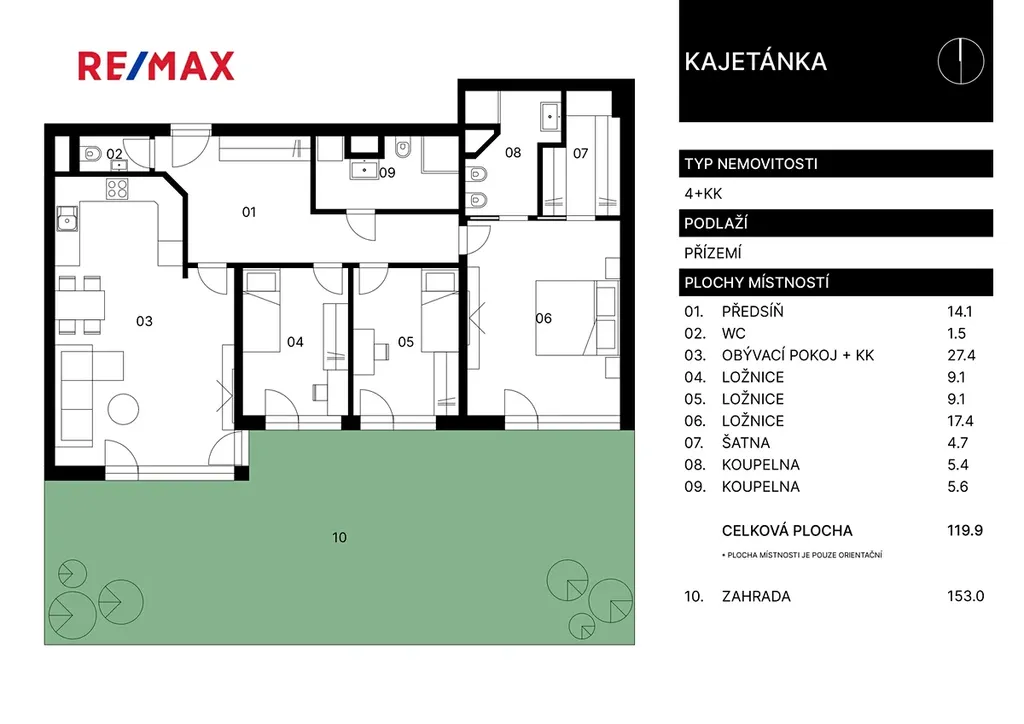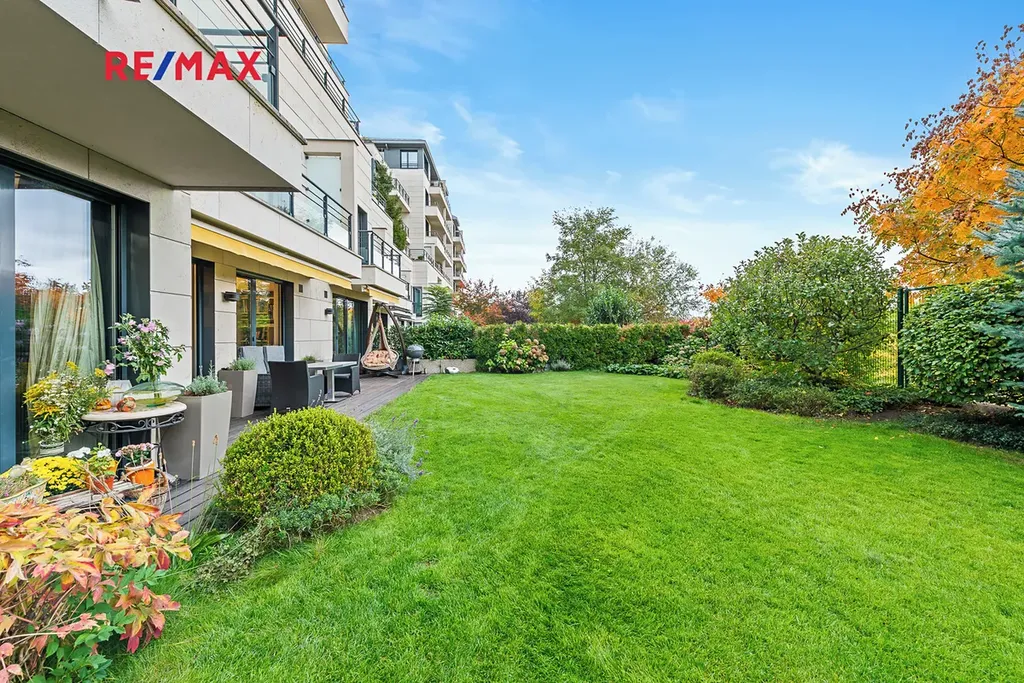 Nabízený byt 4+kk o ploše 120 m² se nachází v přízemí s přímým vstupem do soukromé zahrady o rozloze 153 m², která přechází přímo do parku. Díky jižní orientaci je byt celý den plný světla. Součástí prodeje jsou také dvě garážová stání a sklep.