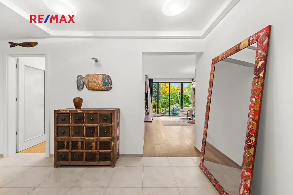 Interiér bytu je laděn do světlých přírodních tónů a byl zařízen s důrazem na vkus, kvalitu a nadčasový design. Byt nabízí výborně řešenou dispozici s prostorným obývacím pokojem, kuchyní a jídelní částí, oddělenou klidovou zónou se třemi ložnicemi a třemi koupelnami. Každý detail byl promyšlen — od rozšířených dveřních otvorů po dokonalé technické vybavení.