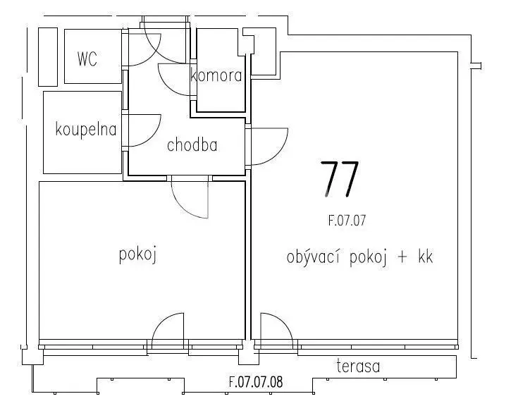 Byt je částečně zařízený k dispozici je kuchyňská linka s elektrickým sporákem, myčkou, lednicí a pračkou. Z obývacího pokoje je přímý vstup na příjemnou terasu orientovanou do klidného vnitrobloku. Koupelna je vybavena vanou, toaleta je samostatná. Součástí bytu je také praktická komora. Podlahy tvoří plovoucí podlaha a dlažba.