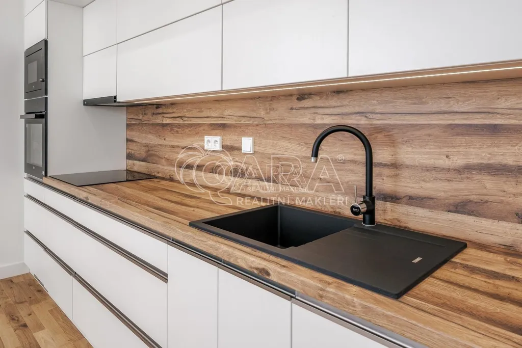 Byt je částečně zařízený nadstandardním nábytkem. Moderní kuchyňská linka je kompletně vybavena všemi potřebnými spotřebiči (lednice s mrazákem, myčka, elektrická a mikrovlnná trouba, digestoř). Součástí je také postel v ložnici a vestavěné skříně na chodbě a v komoře.