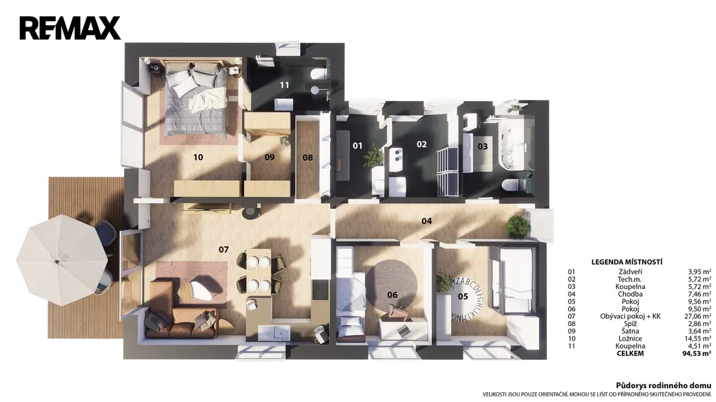 Dispozice 4+kk (123 m²) – dostatek prostoru pro dětské pokoje i pracovnu