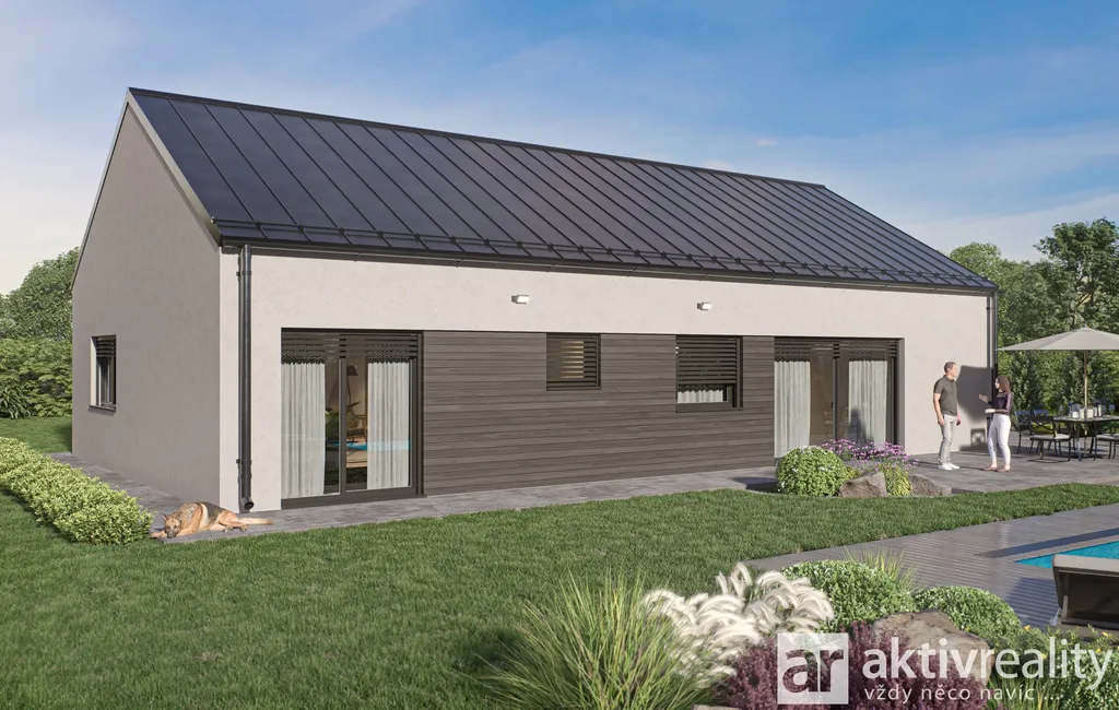 Ideální volba pro rodinu, která hledá prostorné a komfortní bydlení na jednom podlaží bez kompromisů a s velkorysou obytnou částí.