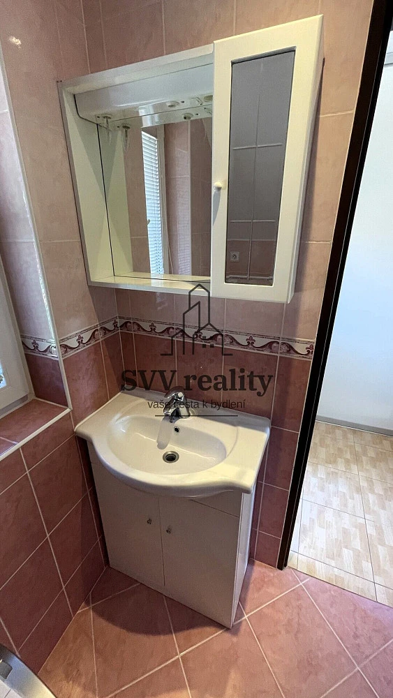 Byt o podlahové ploše 36 m² se skládá z předsíně, koupelnou se sprchovým koutem, pračkou, umyvadlem a WC, elektrický žebřík a topná rohož.