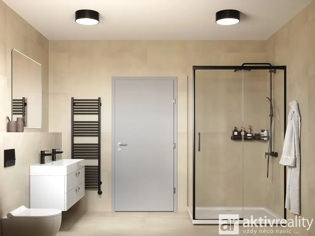 Horní podlaží o výměře 73,9 m² tvoří tři samostatné pokoje (12,8 m², 12,8 m² a 14,6 m²), šatna, komora a dvě koupelny. Toto řešení výrazně zvyšuje komfort užívání a umožňuje pohodlné fungování vícečlenné domácnosti bez kompromisů v soukromí.