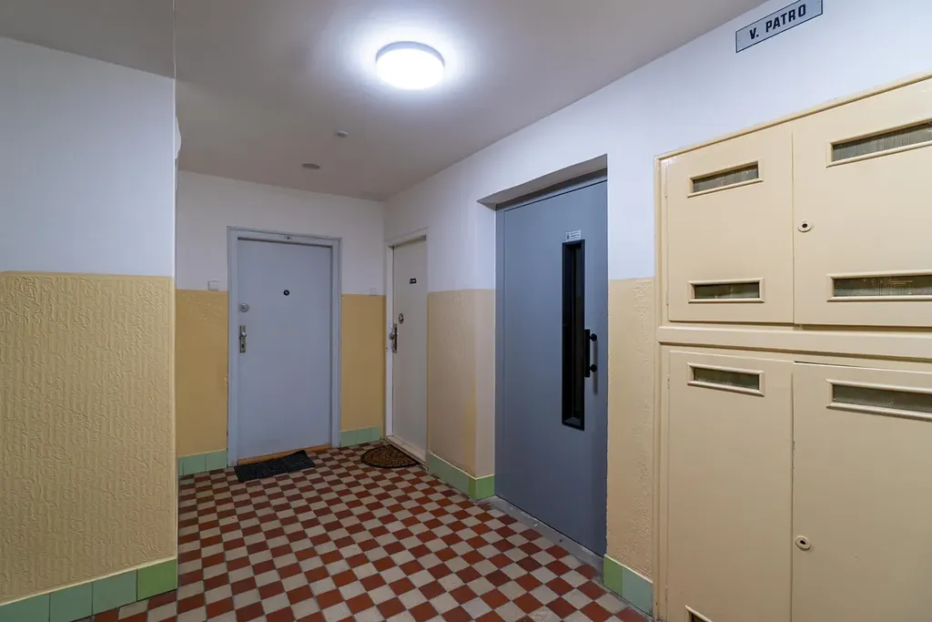 Byt sestává z velice prostorného světlého obývacího pokoje s kuchyňským koutem, který vznikl spojením původní kuchyně a pokoje. Prostor je otevřený do chodby bytu, což mu dodává mimořádnou vzdušnost a ještě umocňuje pocit otevřeného prostoru. Vedle této místnosti je menší pokoj (ložnice) se samostatným vstupem z chodby bytu. Pro inspiraci jsou ve fotogalerii i vizualizace možného zařízení prostoru. V obou místnostech jsou kvalitně renovované parkety. Koupelna i WC jsou rovněž po kompletní kvalitní a vkusné rekonstrukci, v koupelně je připravený přívod na pračku, kterou je rovněž možné umístit vedle kuchyňské linky.