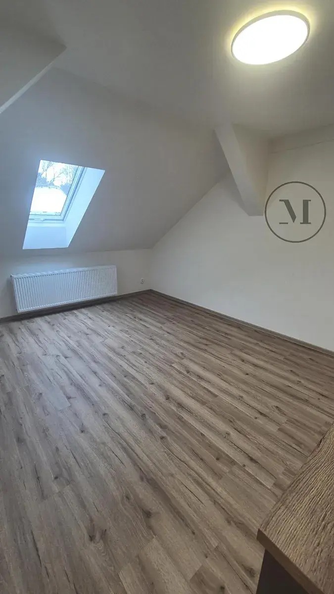 Dominantou bytu je prostorný obývací pokoj s kuchyňským koutem. Moderní koupelna je vybavena sprchovým koutem. Podkrovní charakter bytu vytváří velmi příjemnou atmosféru.