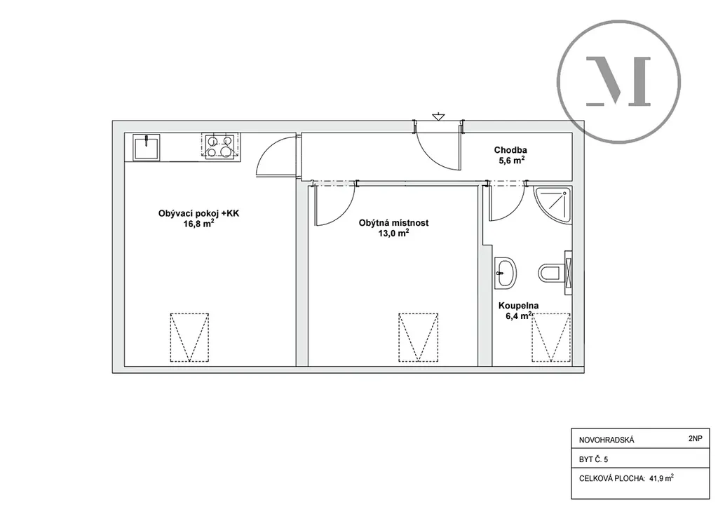 Dispozice bytu (41,9 m²)