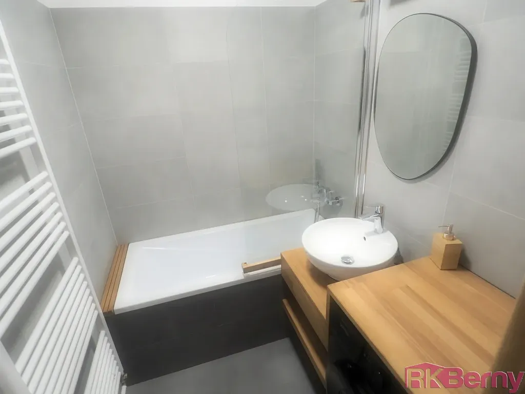 Nové dřevěné podlahy, kuchyně se všemi elektrospotřebiči, atraktivní koupelna, praktické vestavěné skříně.