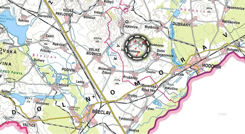 V katastrálním území Starý Poddvorov jsou parcely zapsány na listu vlastnictví 1195 pod čísly 595/7, 1405/127, 1406/180, 1509/24, 1739/14, 1773, 1789/15, 1797/2, 1813/15, 1843/1 a 1844/1.
