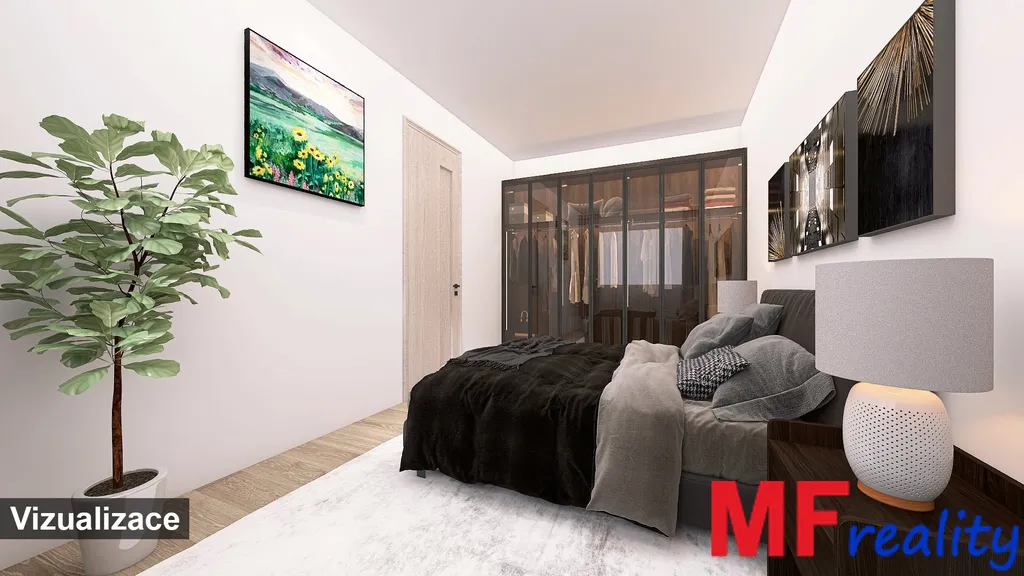 Druhý pokoj, užívaný jako obývací, je průchozí do přiléhající ložnice. Oba pokoje jsou orientovány na severní stranu. Místnosti jsou bez vybavení a působí velice příjemně a vzdušně. Fota vizualizací slouží pouze pro představu, jak může být zařízený s nábytkem.