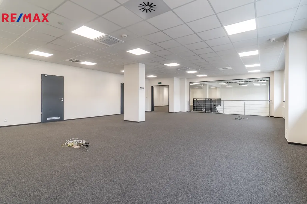 Světlý, otevřený prostor s plnohodnotným zázemím vhodný pro kanceláře, administrativu, open space tým nebo kombinaci pracovních a jednacích místností. Dispozice nabízí flexibilitu úprav dle potřeb nájemce.
