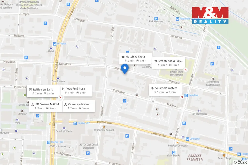 Chtěli jste vždy bydlet blízko centra Českých Budějovic a přitom to mít současně i kousek do přírody? Pak právě vám nabízíme byt 3+1 o výměře 68 m² po kompletní rekonstrukci, který se nachází v prvním nadzemním podlaží zděného bytového domu v ulici Nerudova. Byt se skládá z předsíně, útulné kuchyňky s myčkou a indukční varnou deskou, prostorného obývacího pokoje a dalších dvou pokojů. Koupelna je spojena s WC a kromě sprchového koutu v ní najdete i pohodlnou rohovou vanu. K bytu patří i podíl na společných prostorách - dvorku za domem. Byt je vytápěn elektrickým kotlem, který najdete v zádveří bytu. Lokalita je vhodná jak pro milovníky městského života (obchodní centrum IGY je hned za rohem a na náměstí dojdete pěšky za pár minut), tak i pro ty, kteří mají rádi klidné procházky či jízdu na kole kolem řeky Vltavy. V okolí je kompletní občanská vybavenost – školy, školky i obchody. Pokud vás nabídka zaujala, neváhejte nás kontaktovat!
