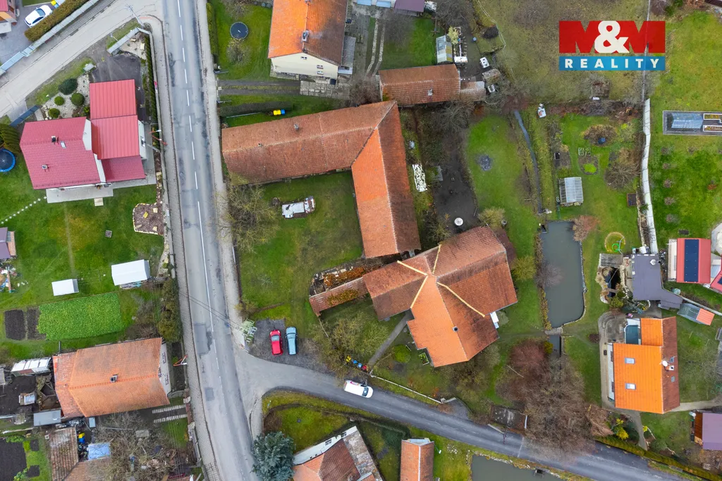 Pozemek o rozloze 917 m² poskytuje dostatek prostoru pro moderní rodinný dům, zahradu i místo pro odpočinek. Stávající cihlová stavba se střechou z pálených tašek má užitnou plochu 253 m² a nabízí čtyři místnosti v přízemí, sklep a navazující rozsáhlou stodolu, kterou lze využít jako garáž, dílnu či sklad.