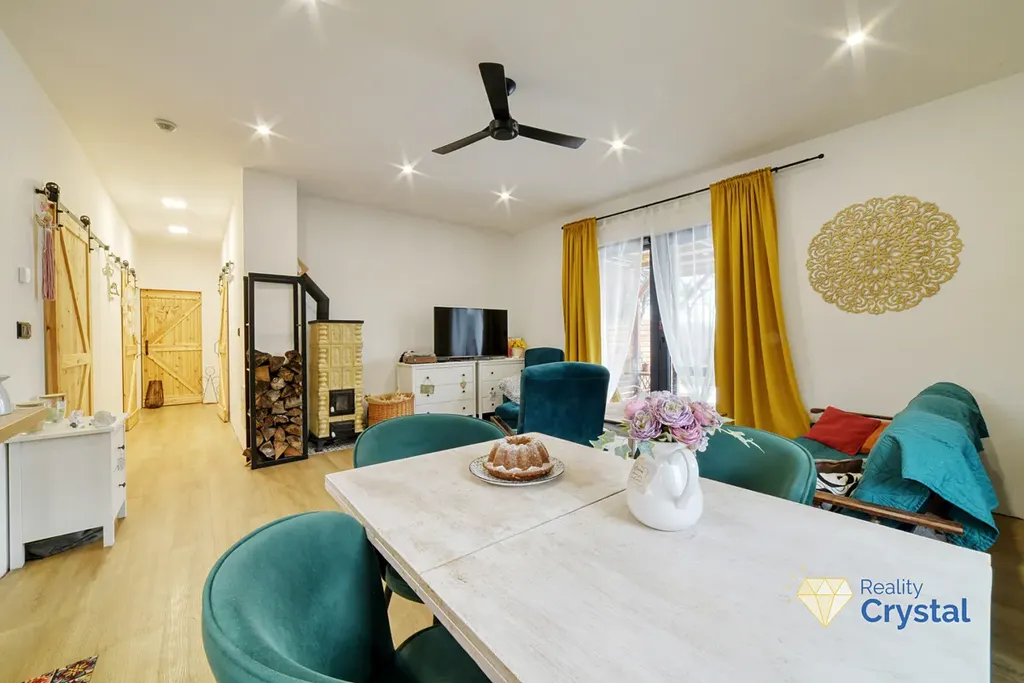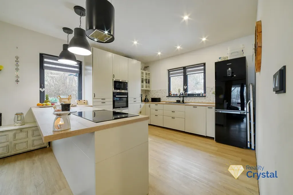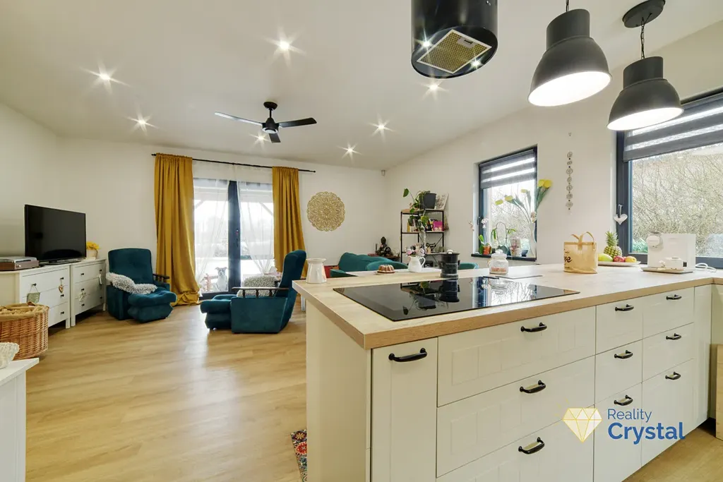 Samostatný dům byl zkolaudován v roce 2021 má dispozici 4+kk a užitnou plochu 110m2. Z obývacího pokoje s kuchyní, který tvoří srdce