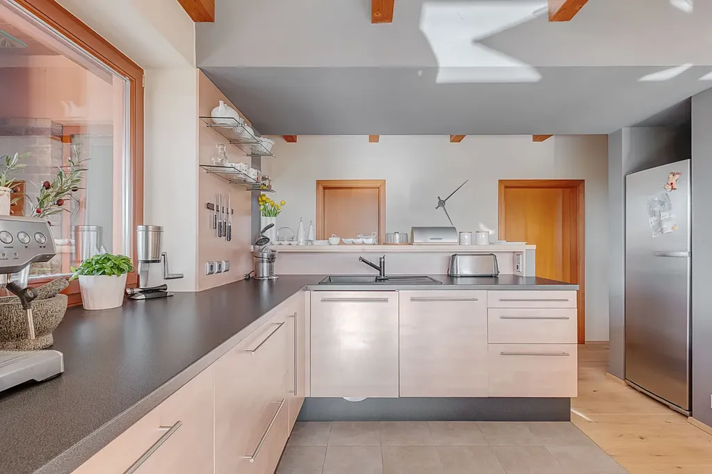 Všechny části domu jsou promyšleně a prakticky rozdělené, přesto tvoří velmi příjemně propojený celek. Dispozice vnitřních prostor a stejně tak styl vybavení na Vás dýchne jedinečnou atmosférou.