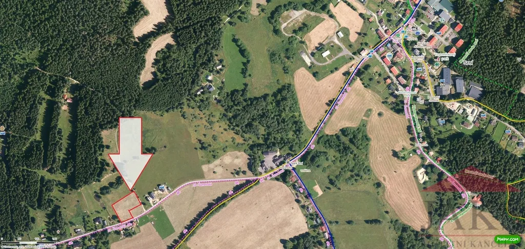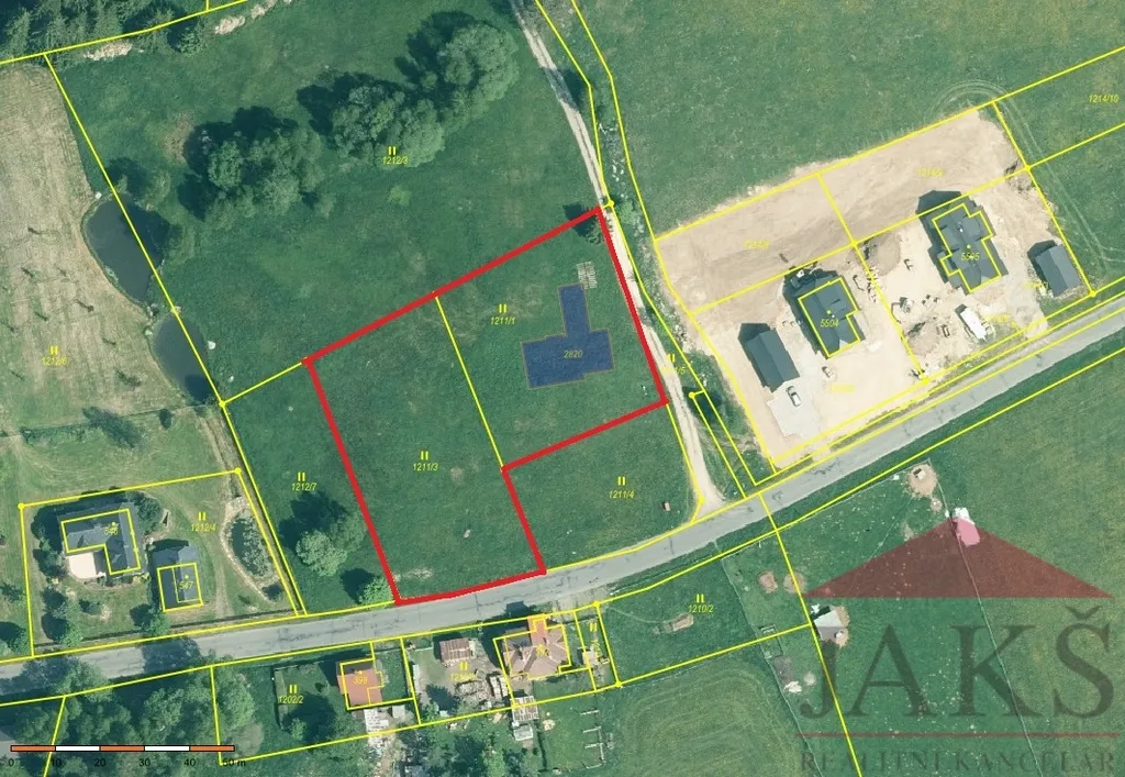 Navazující samostatný pozemek s vlastním přístupem z obecní cesty: 2.072 m2; který teď není určený k výstavbě, ale je požádáno o začlenění do územního plánu k výstavbě.
