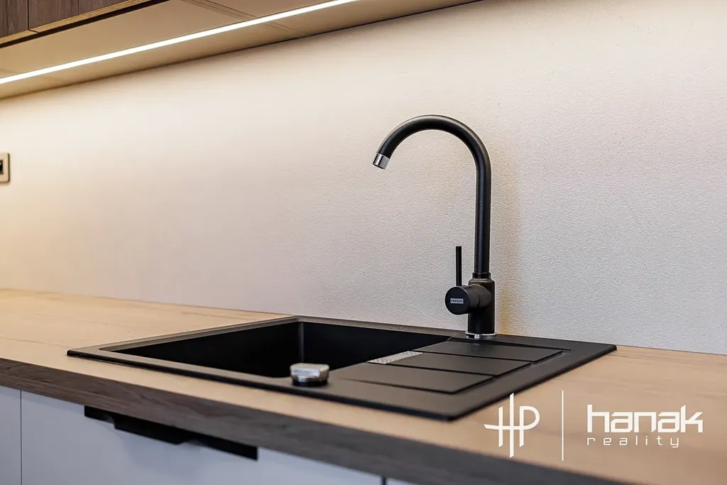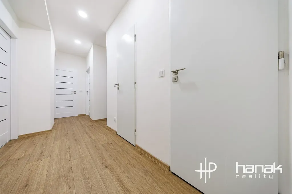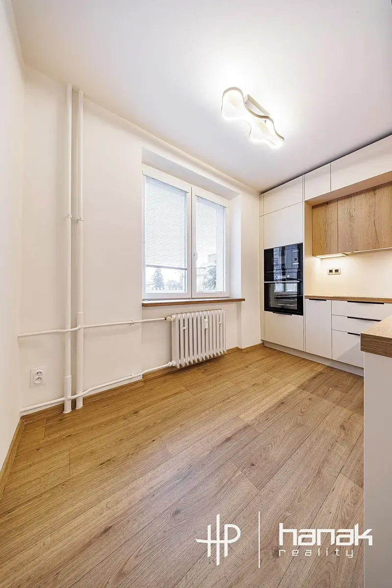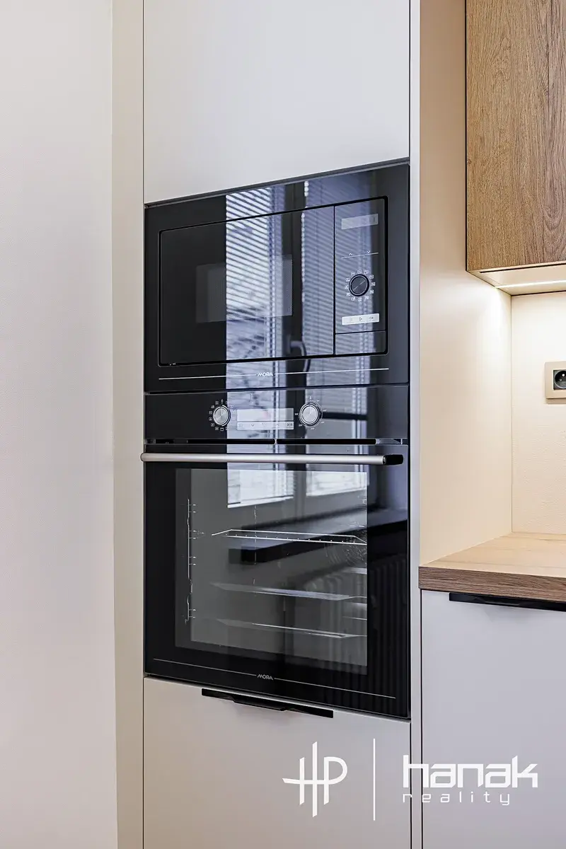 Při vstupu do bytu uvidíte zádveří se vstupy do koupelny se sprchovým koutem a na samostatnou toaletu. Z chodby je dále přístup do kuchyně a jednotlivých pokojů. V bytě je instalovaná nová kuchyňská linka včetně vestavěných spotřebičů a dostatkem úložných skříněk. Rekonstrukce bytu byla pojata v duchu minimalismu s důrazem na kvalitu v přirozeném tónu.