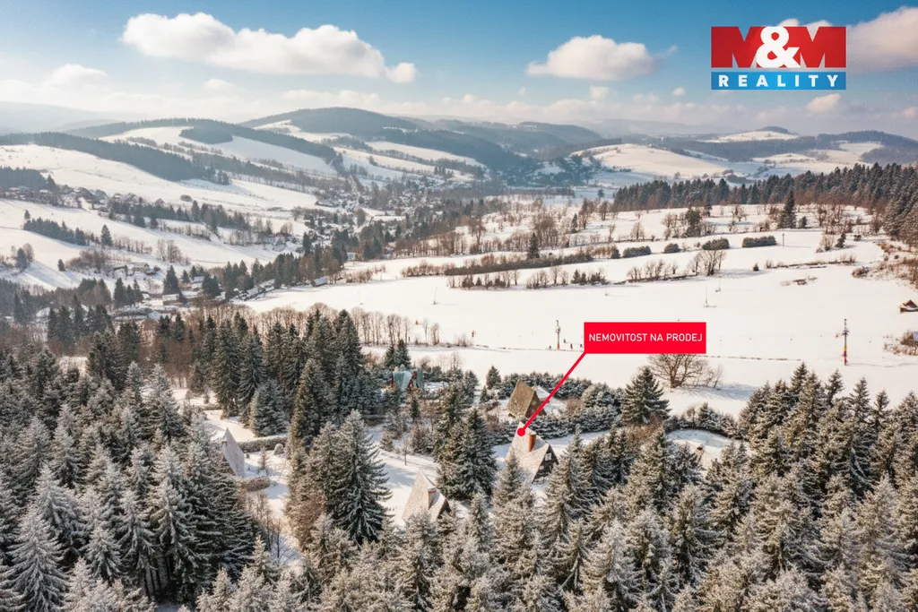 Nabízíme Vám chatu na exkluzivním místě v Čenkovicích, na polosamotě u horní stanice vleku "Jižní stráň". Chata stojí na vlastním pozemku o výměře 1036 m2. Je odtud nádherný výhled na panorama hor a do údolí. Místo zaručuje naprostý klid a soukromí a přitom se nachází jen 1,5 km od centra Čenkovic a od stanice lanovky na Bukovou horu. Tato atraktivní lokalita je ráj nejen pro lyžaře a zimní sporty - jsou zde ideální podmínky pro celoroční rekreaci. Chata ma tři podlaží a podlahovou plochu 80 m2, najdete zde je obývací pokoj s kuchyňským koutem, menší společenskou místnost, koupelnu, toaletu a dvě ložnice. Je zde zavedena elektřina a voda z místní studny. Chata je v původním velmi dobře udržovaném stavu, okna a dveře jsou nová plastová. Je vytápěná krbovými kamny s rozvody a přímotopy. Chatu můžu být nejen Vaším "kouskem ráje" uprostřed přírody, ale být zároveň i investicí ke krátkodobým pronájmům, chatu může pohodlně využívat šest osob. Pro více informací kontaktujte prosím makléře.