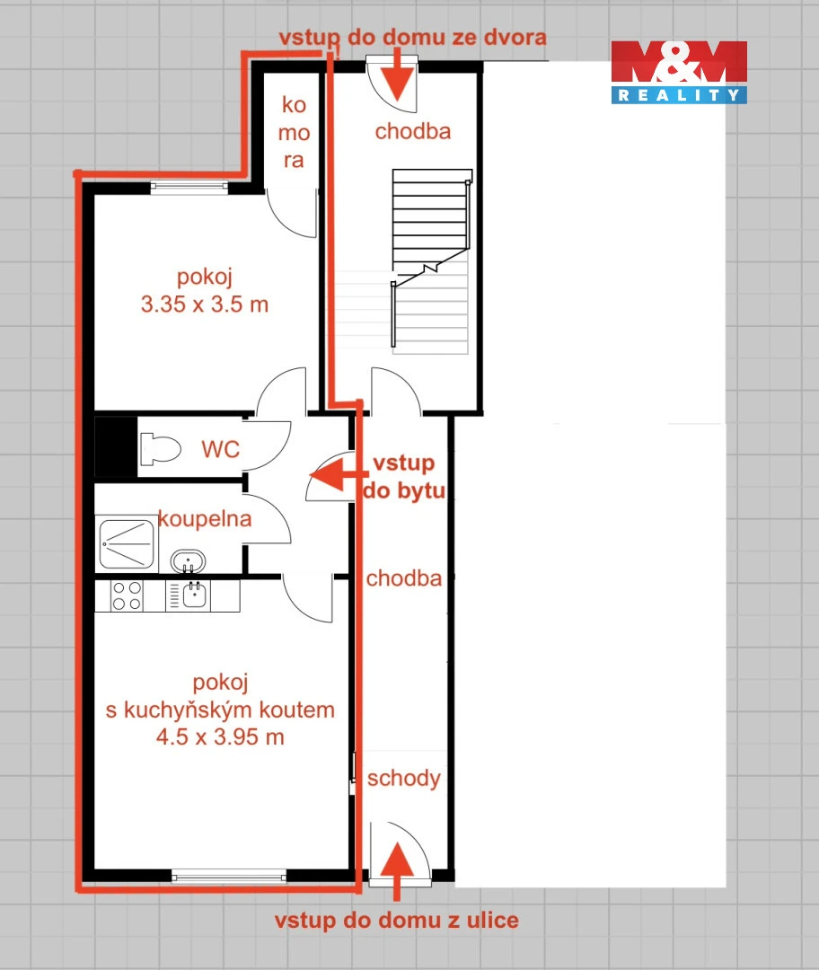 Nabízíme k pronájmu byt 2+KK o užitné ploše cca 45 m², situovaný v přízemí cihlového domu v klidné části Ostravy - Mariánských Hor. Byt prošel zdařilou rekonstrukcí, disponuje pokojem s kuchyňkou linkou, samostatným WC, koupelnou a jedním neprůchozím pokojem. Po domluvě možno zajistit vybavení a nábytek. Dům má novou zateplenou fasádu, což zvyšuje jeho atraktivitu a snižuje energetickou náročnost. Velkou výhodou je možnost bezpečného parkování v uzavřeném dvoře s přístupem přes elektrickou bránu. Ideální pro ty, kdo hledají klidné bydlení s výbornou dostupností služeb v blízkosti MHD. Neváhejte a domluvte si prohlídku!