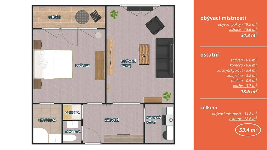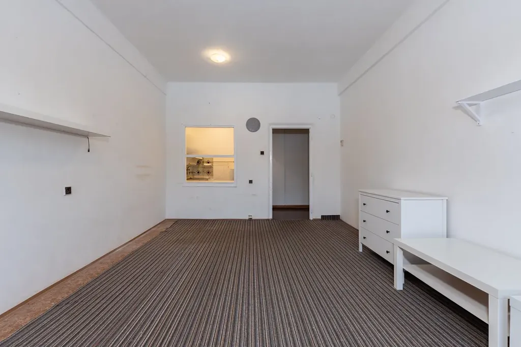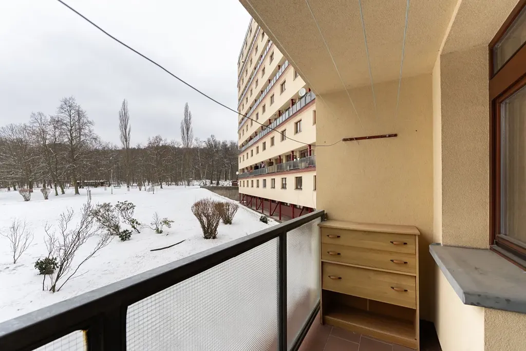 Byt tvoří vstupní chodba, prostorný obývací pokoj s kuchyňským koutem, samostatná ložnice s přímým vstupem na lodžii orientovanou do klidné zeleně, koupelna s vanou a samostatná toaleta. Byt je v původním udržovaném stavu, je vyklizený, bez nájemníků a ihned volný – připraven k rekonstrukci podle představ nového majitele.