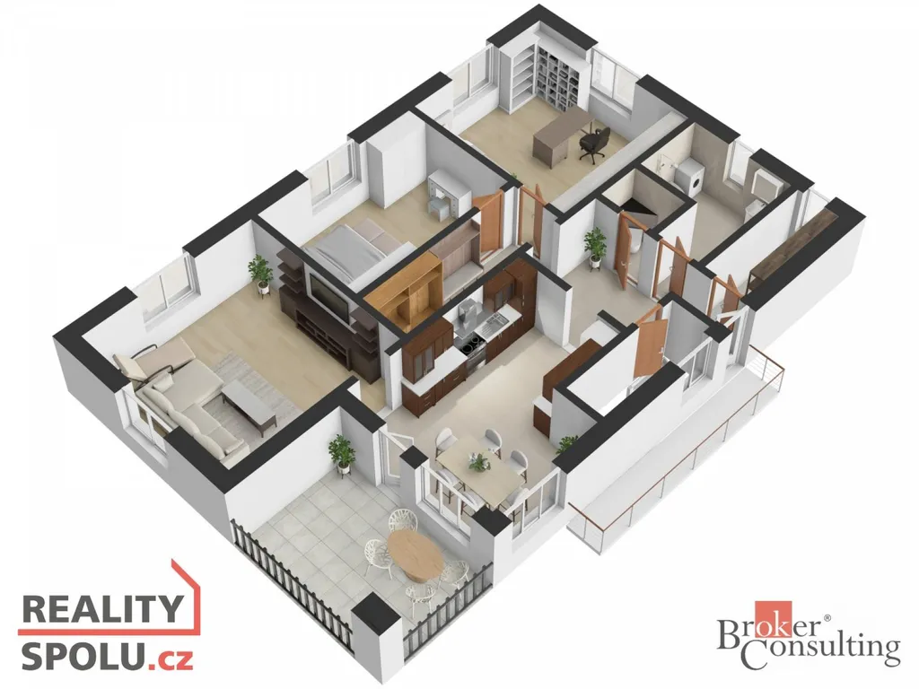 a přímý vstup na krytou terasu s 11m2 i balkon s 5m2.