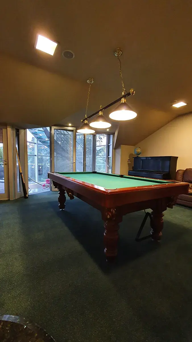 Nadstandartní dům s vlastní střelnicí, bowlingem, saunou, bazénem, vyhlídkovou věží, vinárnou, sedmi záchody.