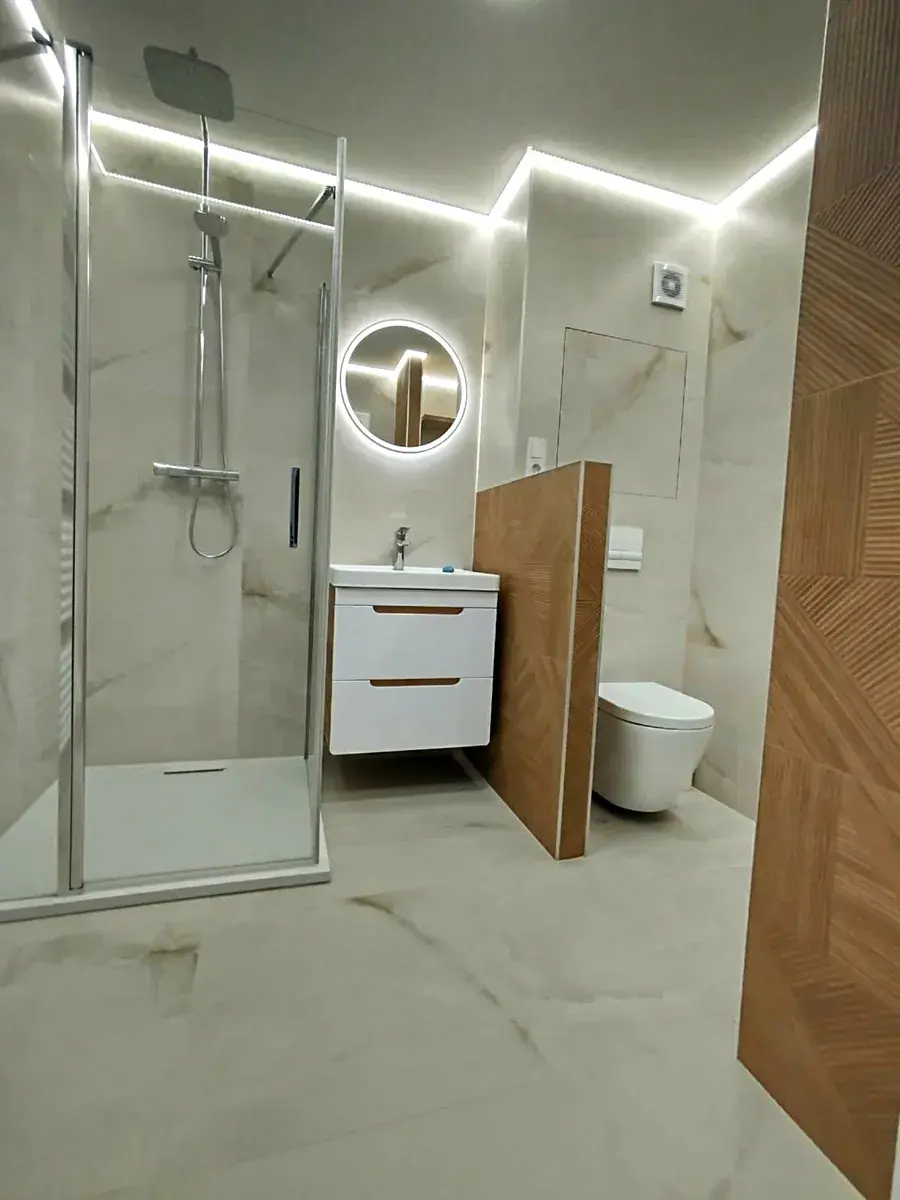 Koupelna prošla celkovou rekonstrukcí ( vybavení pračka).