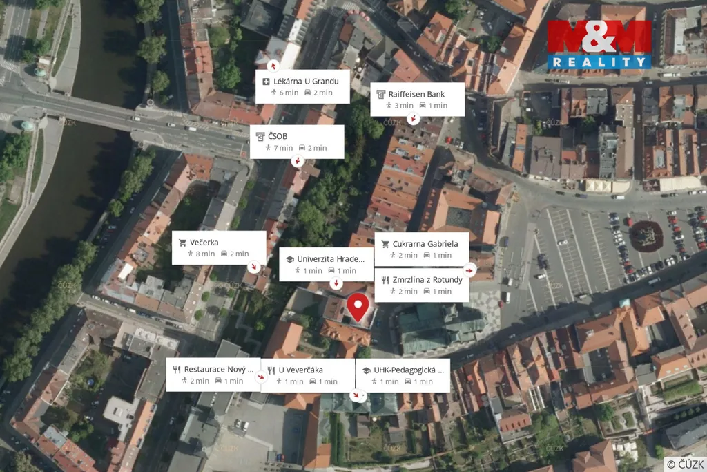 Jedná se o lokalitu s výbornou občanskou vybaveností v místě. Kryté parkování je možné v parkovacím domě dvě minuty chůze od domu.