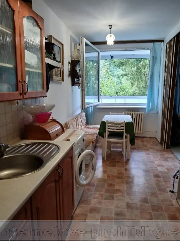 22m2, samostatný neprůchozí pokoj s lodžii v panelovém domě s výtahem, 4. patro, plně zařízený s možností úklidu. K dispozici vlastní WC a koupelna. Před domem bezplatné parkování. V bytě jedna osoba - žena, která využívá pouze kuchyň a obývací pokoj. Nájemné 12000, vratná kauce i provize ve stejné výši - pouze pro muže věk 45 -60 let.