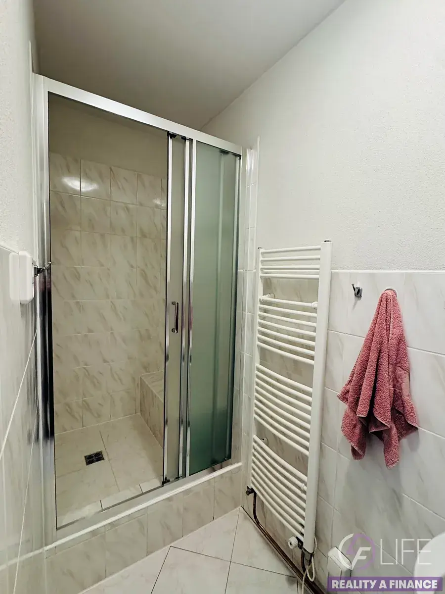 Dispozice: kuchyň s kuchyňskou linkou, koupelna se sprchovým koutem a WC, obývací pokoj.