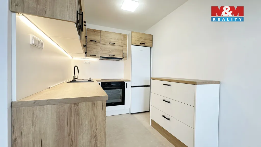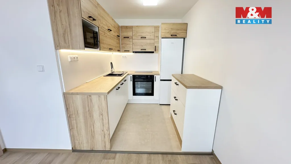 Součástí vybavení je lednice, pračka, myčka a vestavěné skříně. Dispozice je vhodná pro 2–3 osoby.