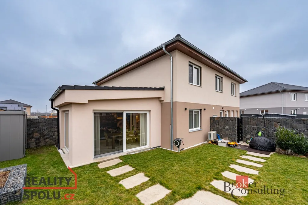 Přesně takový pocit nabízí tento moderní rodinný dům o dispozici 3+1 s podlahovou plochou 93,7 m² a zahradou 179,81 m² v klidné obci Polerady.