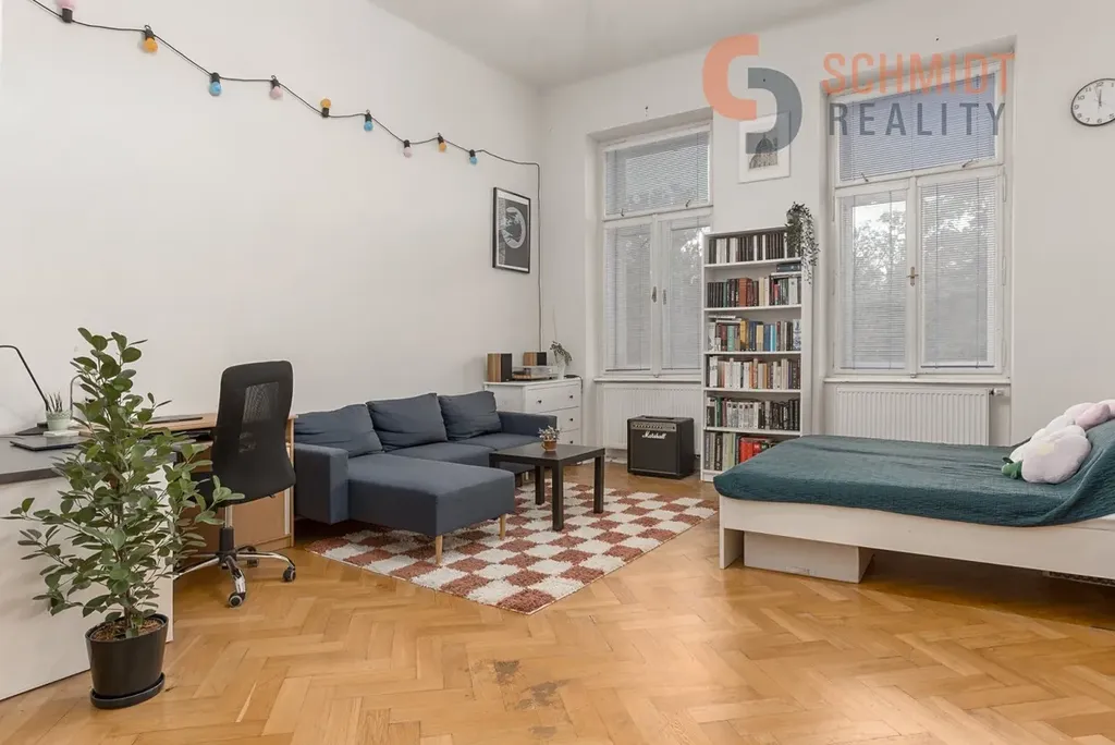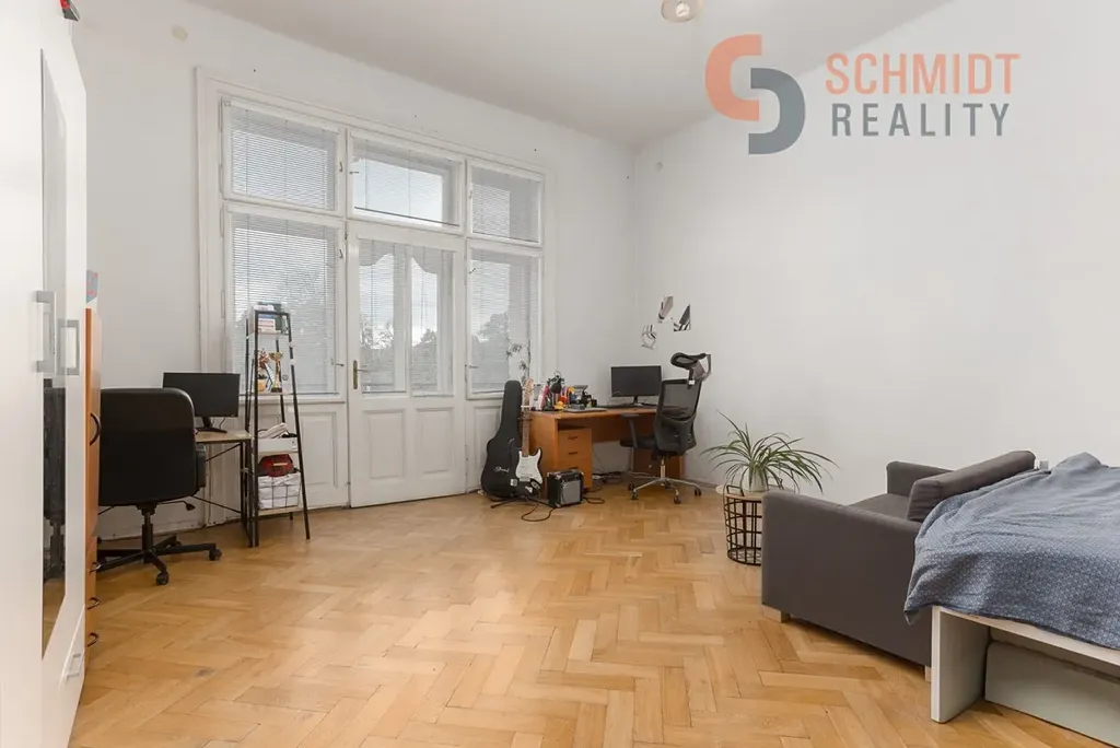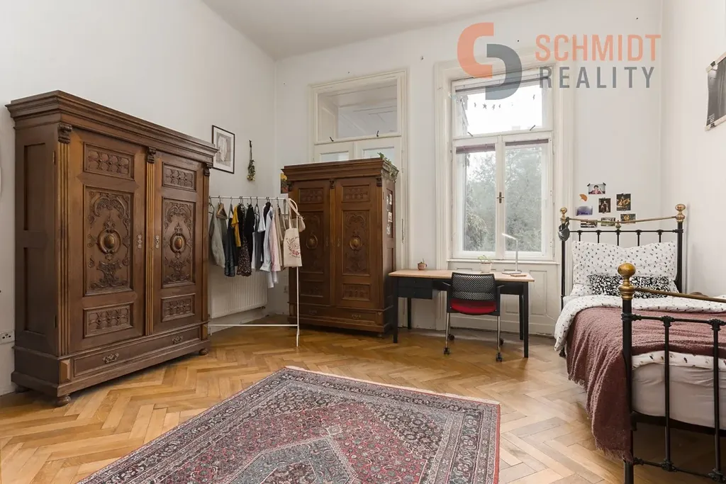 Byt zaujme svou velkorysou dispozicí, vysokými stropy a atmosférou, která v sobě spojuje eleganci minulého století s potenciálem pro moderní úpravy podle vlastních představ.