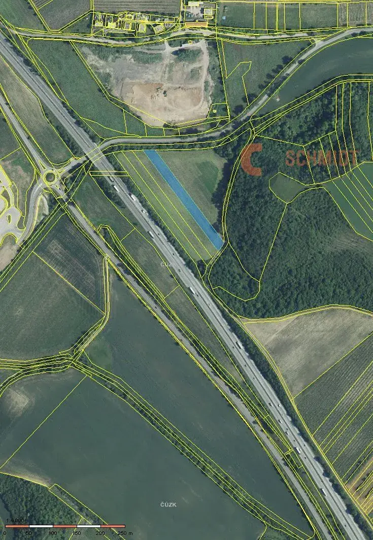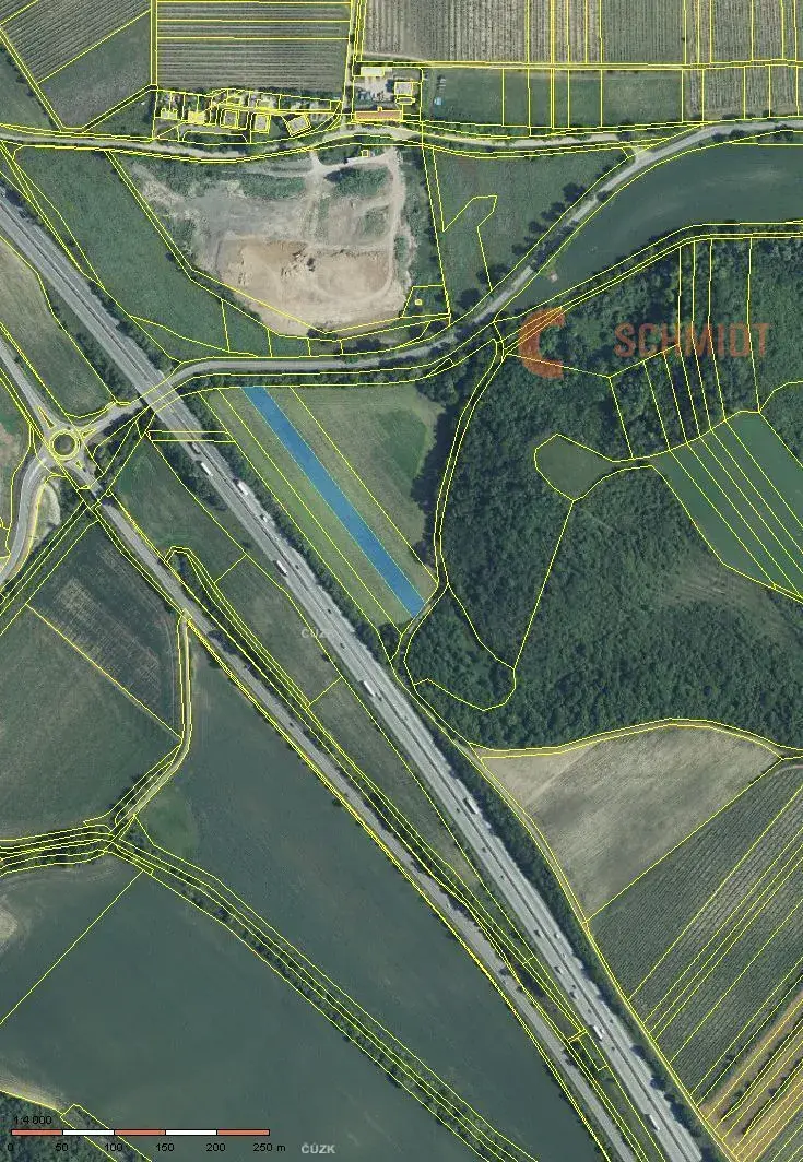 Pozemek se nachází v těsné blízkosti dálnice D2 a silnice E65