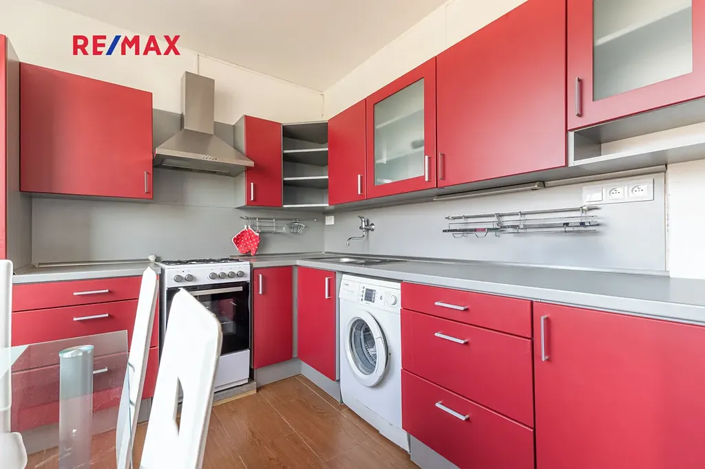 Nabízíme světlý a prostorný byt 3+1 o podlahové ploše 88,7 m², který se nachází v 9. patře kompletně revitalizovaného panelového domu. Byt je velmi dobře řešený, má 2 neprůchozí pokoje, prostorný obývací pokoj, kuchyňský kout a lodžii o výměře 3 m² přístupnou z jedním z pokojů. K bytu náleží také 2 sklepní kóje (celkem 4 m²). Dům prošel kompletní revitalizací - zateplení, plastová okna, společné prostory včetně kamerového systému a výtahu.