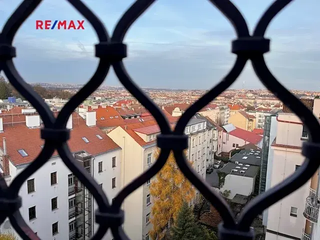 Hlavním lákadlem bytu je však prostorná střešní terasa o velikosti 18m2, která je umístěna do vnitrobloku a nabízí výjimečný a nerušený výhled na celou Prahu. Výhledově bude společenství vlastníků jednat o instalaci výtahu.