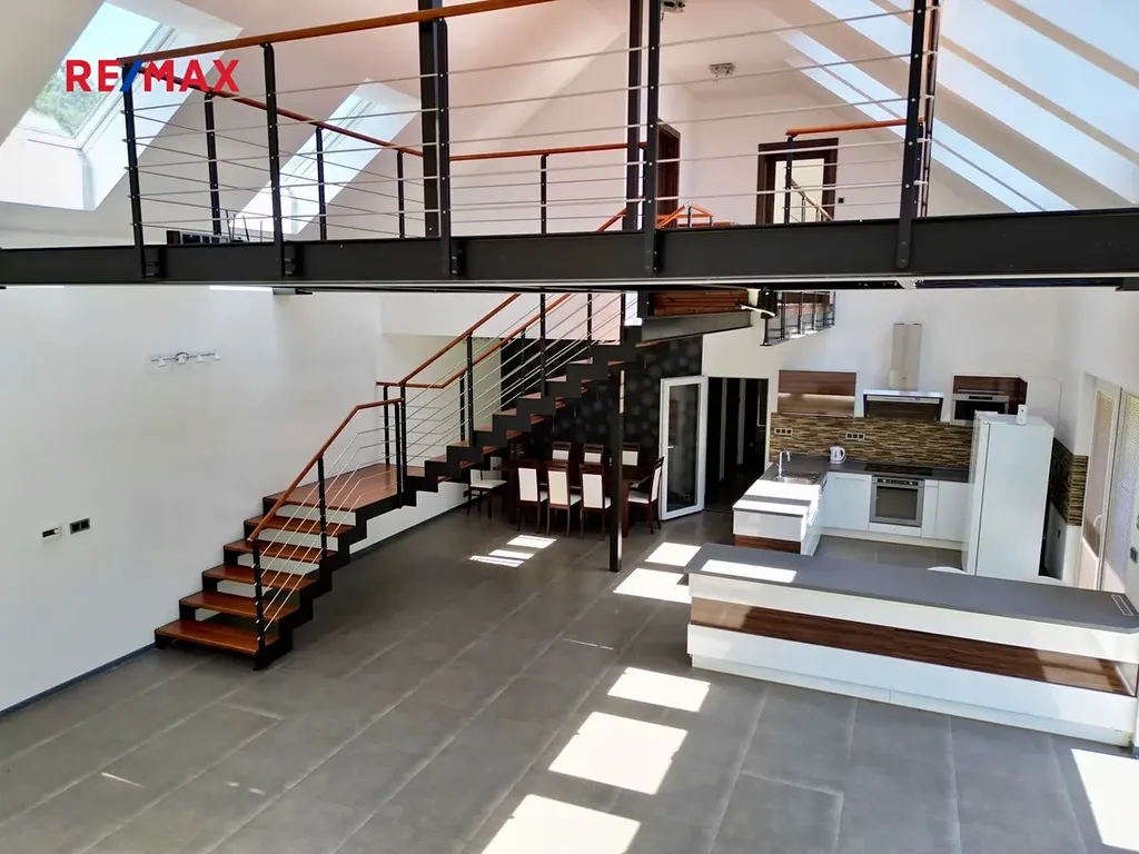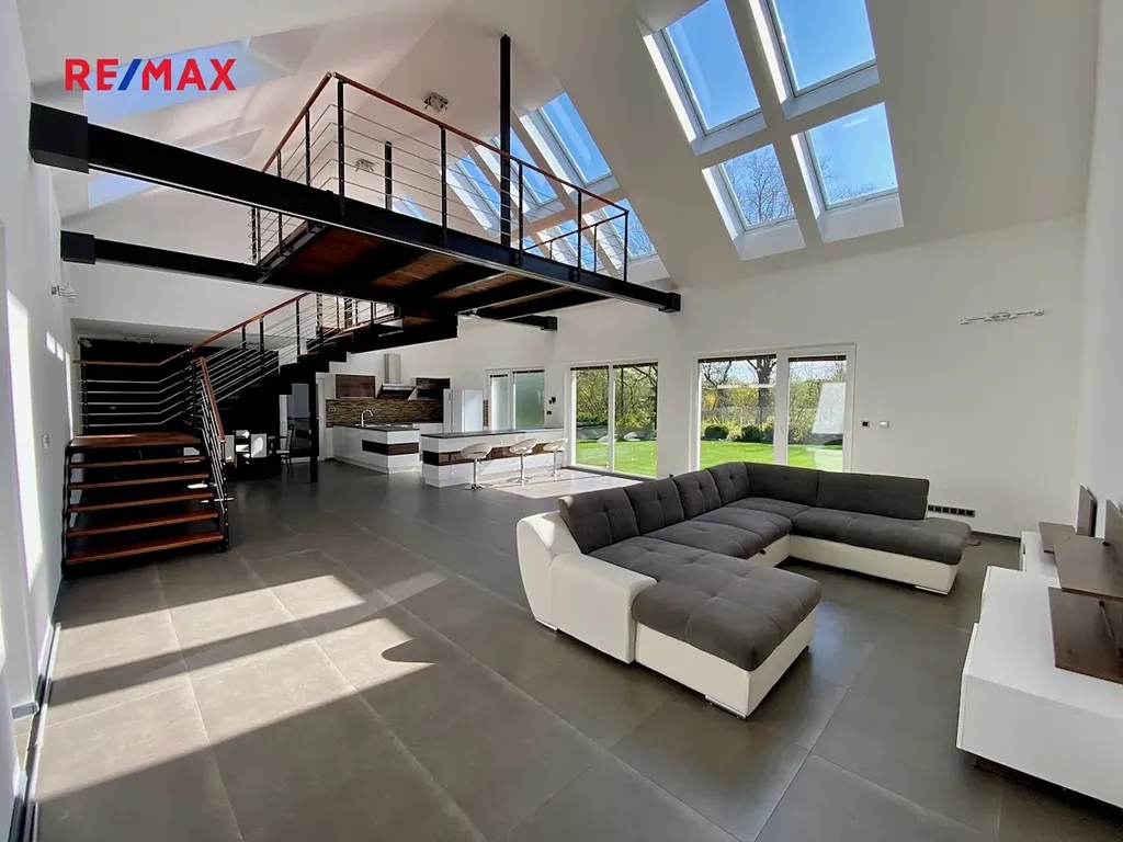 Jedinečně řešený nový dům ideálně propojený s okolní přírodou. Exkluzivitu nabídky umocňuje architektonické řešení interiéru - dům o užitné ploše 200 m2 je vzdušný a krásně prosvětlený. Srdcem domu je velký obývací pokoj s kuchyní a jídelnou o velikosti 92 m2, nad kterým je ochoz, který lze užívat např. jako pracovnu.
