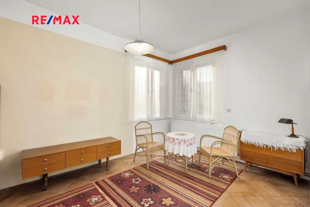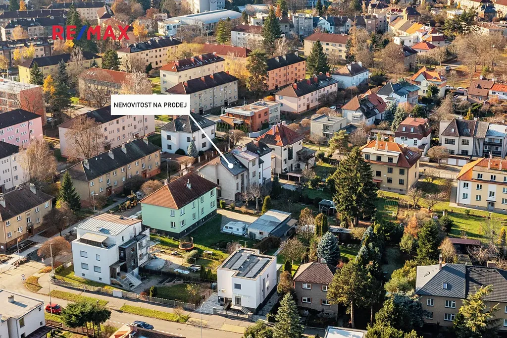 Nabízíme Vám výjimečnou investiční či rodinnou příležitost – řadovou vilu s celkovou podlahovou plochou cca 290 m² na pozemku o výměře 405 m². Dům má tři nadzemní podlaží se třemi byty se samostatnými vstupy. Suterén má výměru cca 85 m² – kde je garáž, technická místnost s kotlem na plyn, sklepy a prádelna. Dům je určen k rekonstrukci a je napojen na všechny inženýrské sítě a stojí na rovinatém pozemku; v zadní části zahrady se nachází zahradní domek s elektrickým připojením. Dům byl postaven v roce 1940, je v původním stavu - původní dřevěná okna, střecha z eternitu a původní parketové podlahy.