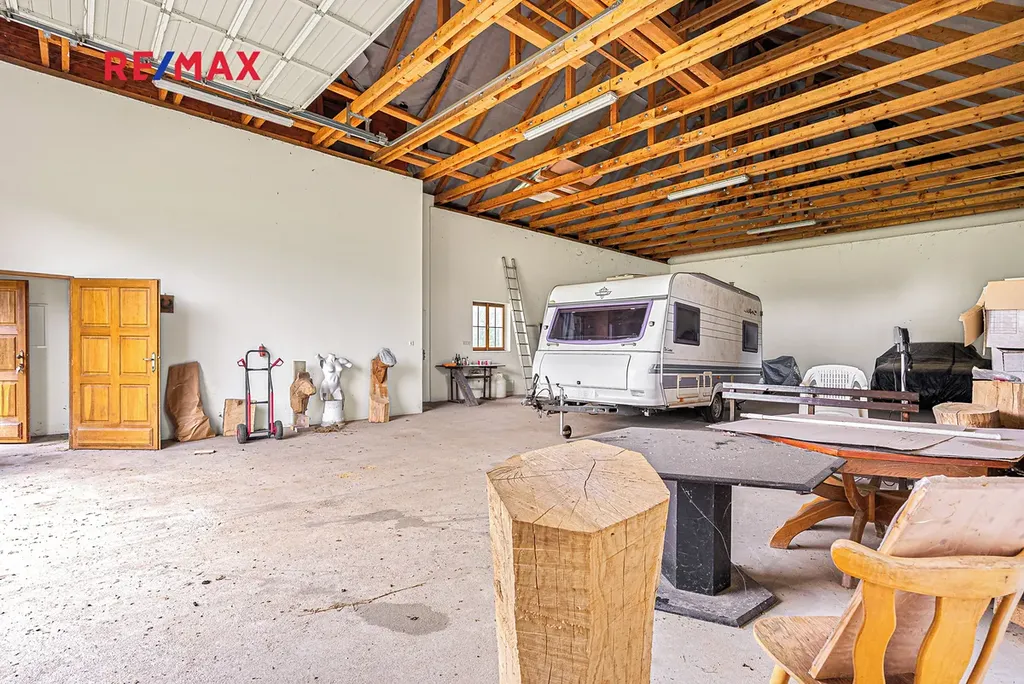 Ve výhradním zastoupení nabízíme prodej rodinného domu o mimořádné velikosti 555 m2 v obci Horní Libchava. Postaven byl v roce 2005 a je rozdělen na obytnou část a technickou část. V technické části domu se nachází 4 prostorné garáže a veliká hala + v horním patře je připraven prostor o velikosti 88 m2 pro vybudování samostatné bytové jednotky nebo kanceláří. Obytná část domu je podsklepená. Přesné zakreslení s rozměry budovy naleznete v přiložených půdorysech v tomto inzerátu. Tento dům nabízí příležitost pro vícegenerační bydlení, zároveň tak propojení bydlení a podnikání, pronájem technických částí (garáží a haly) atd. Nemovitost vyžaduje významnější opravy, mimo jiné opravu střechy a sanaci prasklin ve zdech.